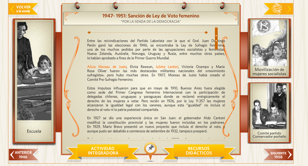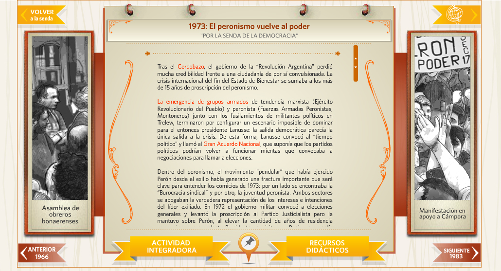 Por la senda de la democracia fue pensado y elaborado como una plataforma que pueda mostrar, de forma dinámica y entretenida, las diferentes instancias sociales, políticas y culturales por las que atravesó nuestro país en el siglo XX y que configuraron lo que hoy entendemos como «democracia».