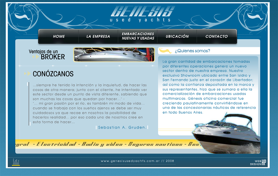 Sitio empresa de modelos en el mercado nautico. Diseño animado y con posibilidad de actualizaciones permanentes.